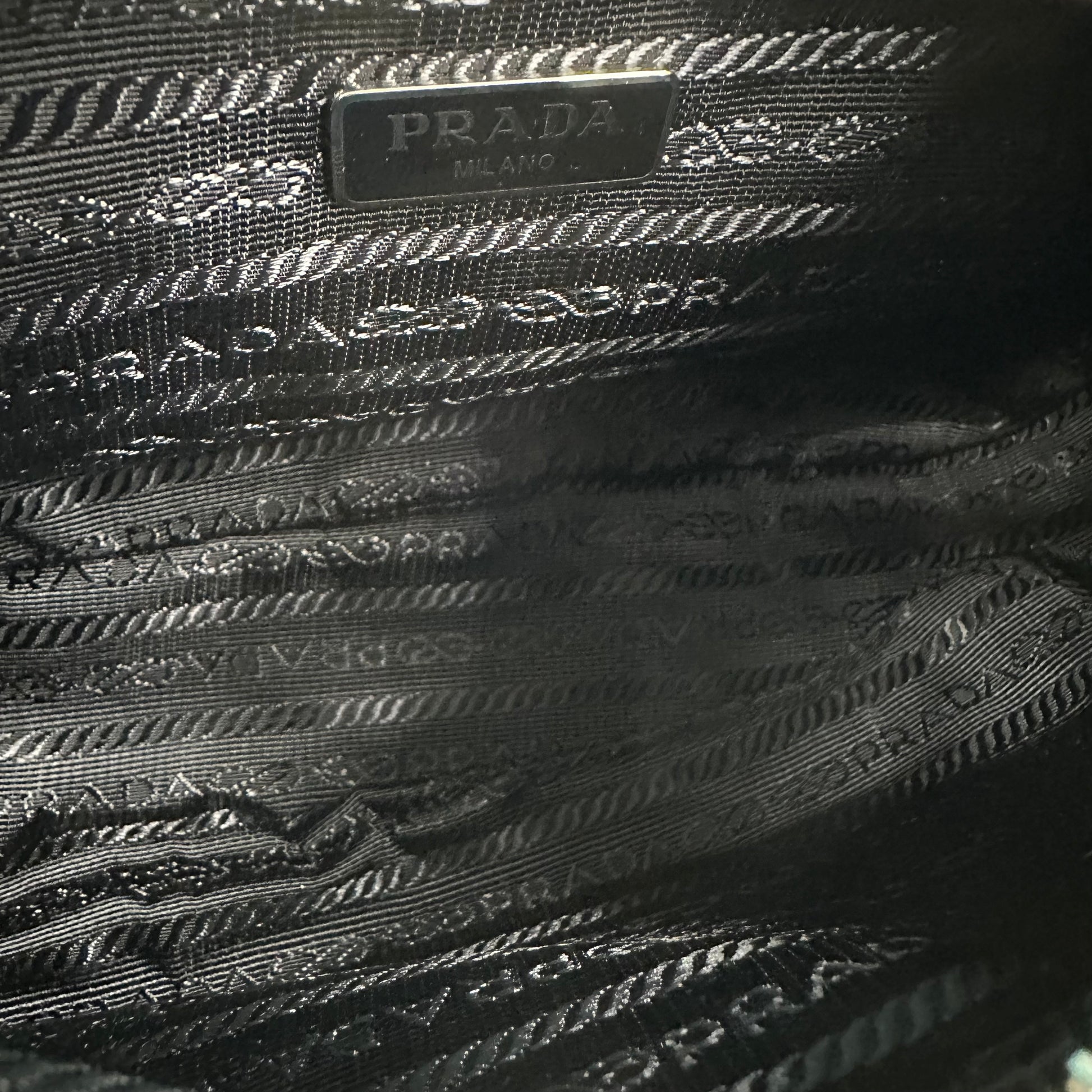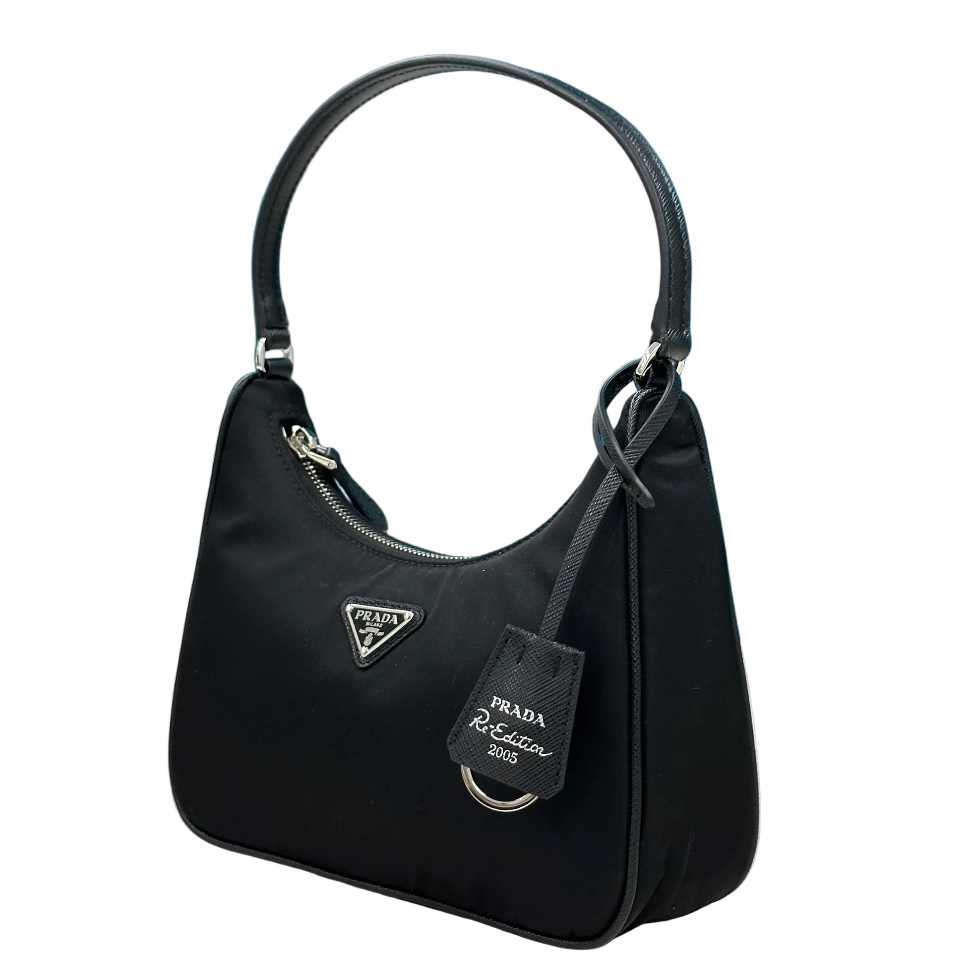 Dettagli: Include una targhetta portanome rimovibile con la scritta "Prada Re-Edition 2005".