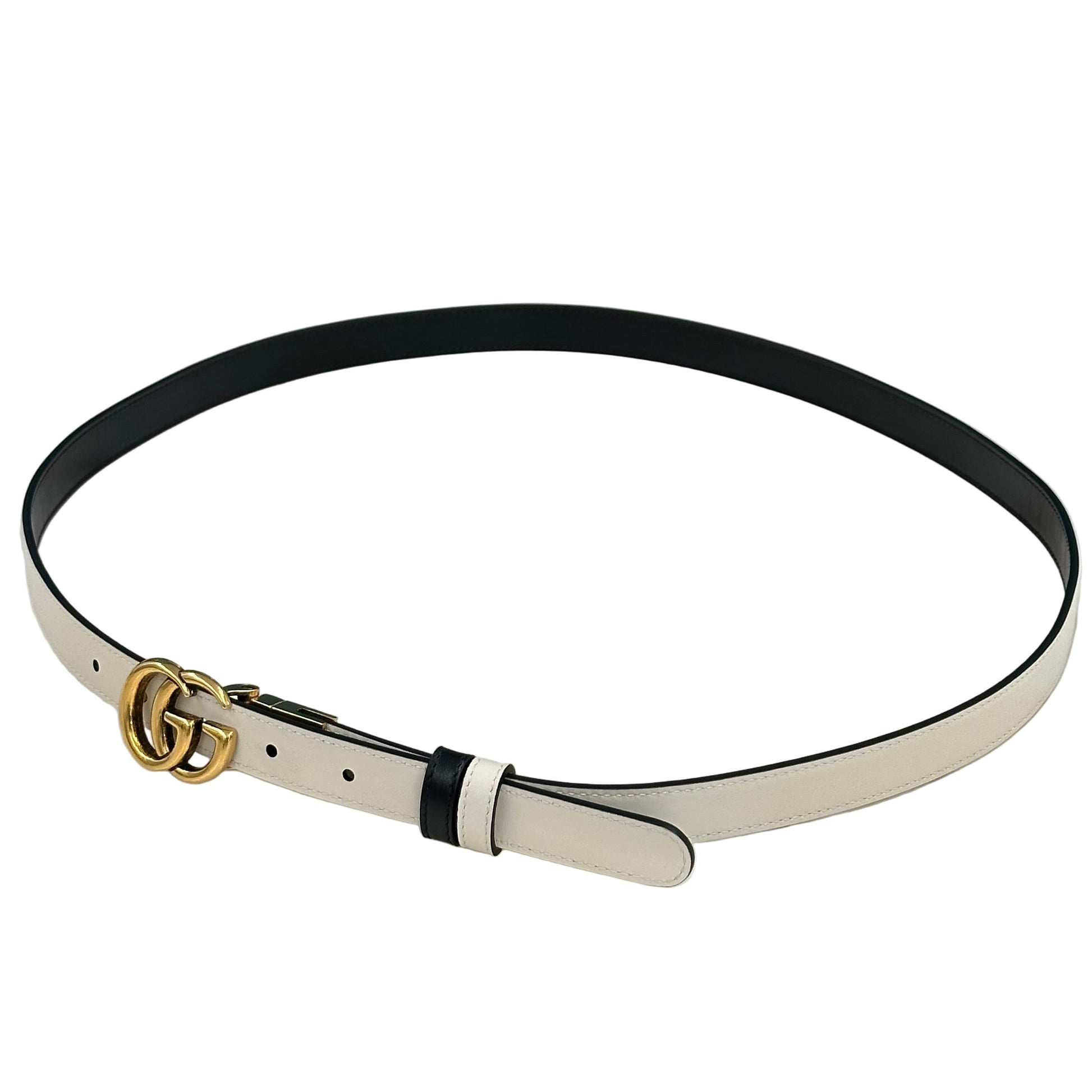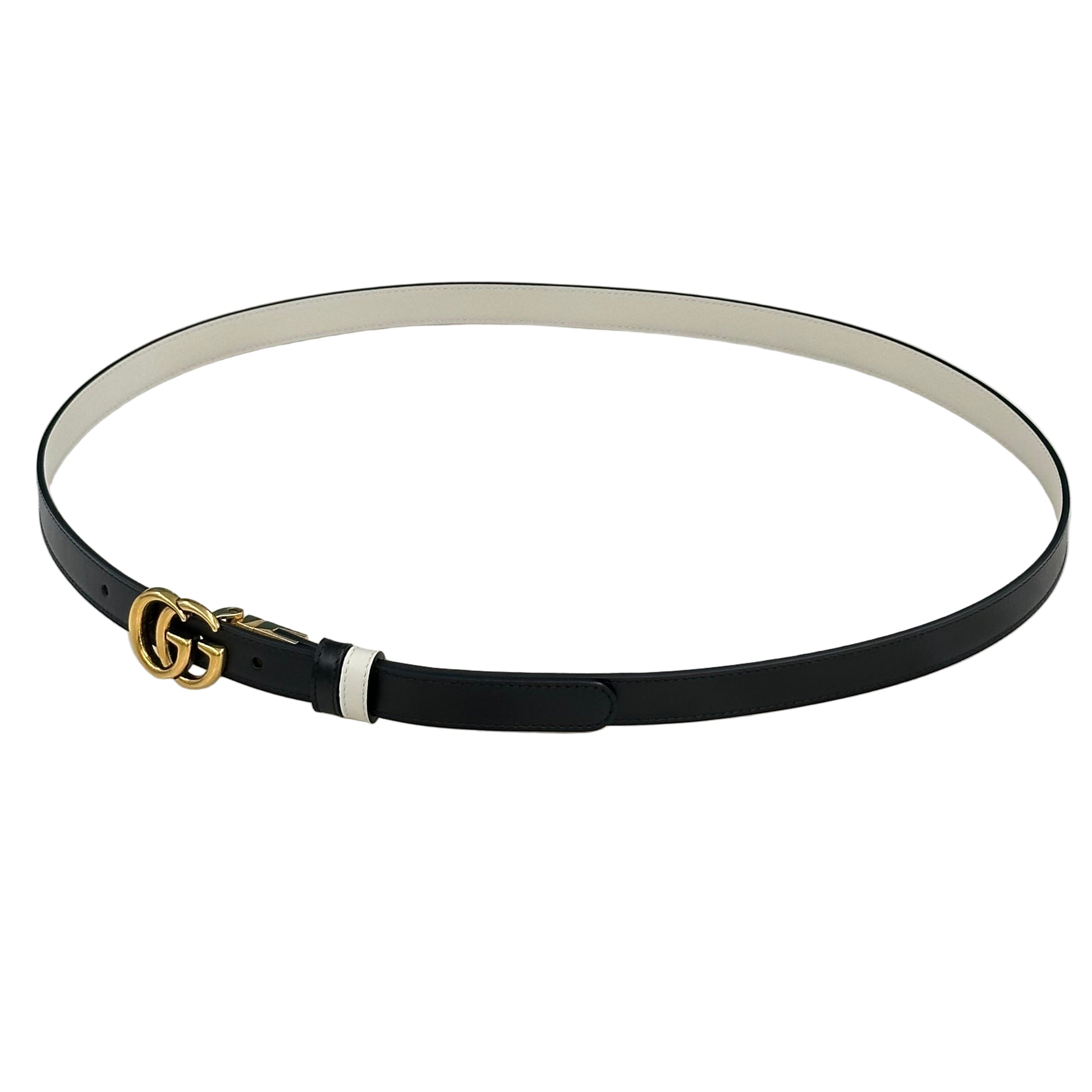 - Modello: Cintura reversibile GG Marmont di Gucci in pelle nera e bianca.