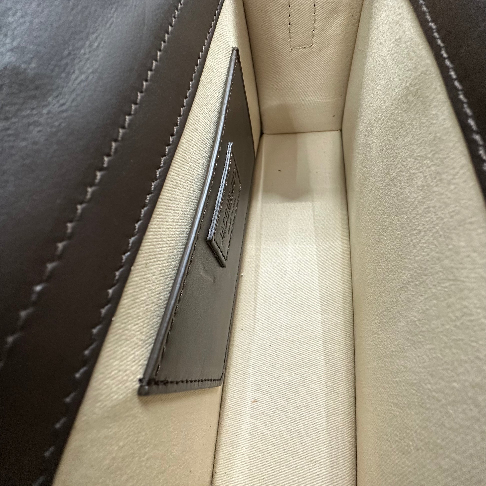 - Jacquemus Le Grand Bambino. È realizzata in pelle liscia marrone scuro.
