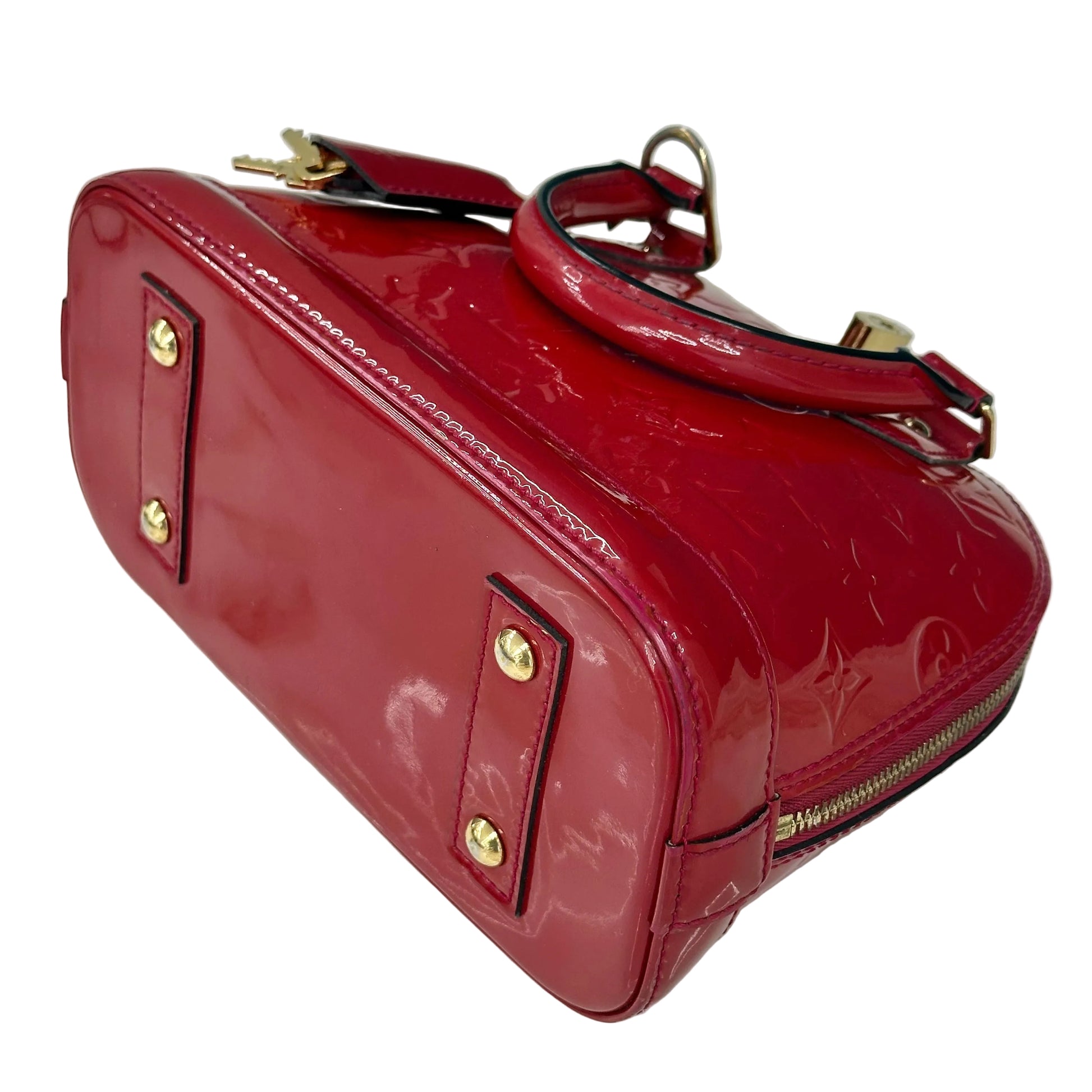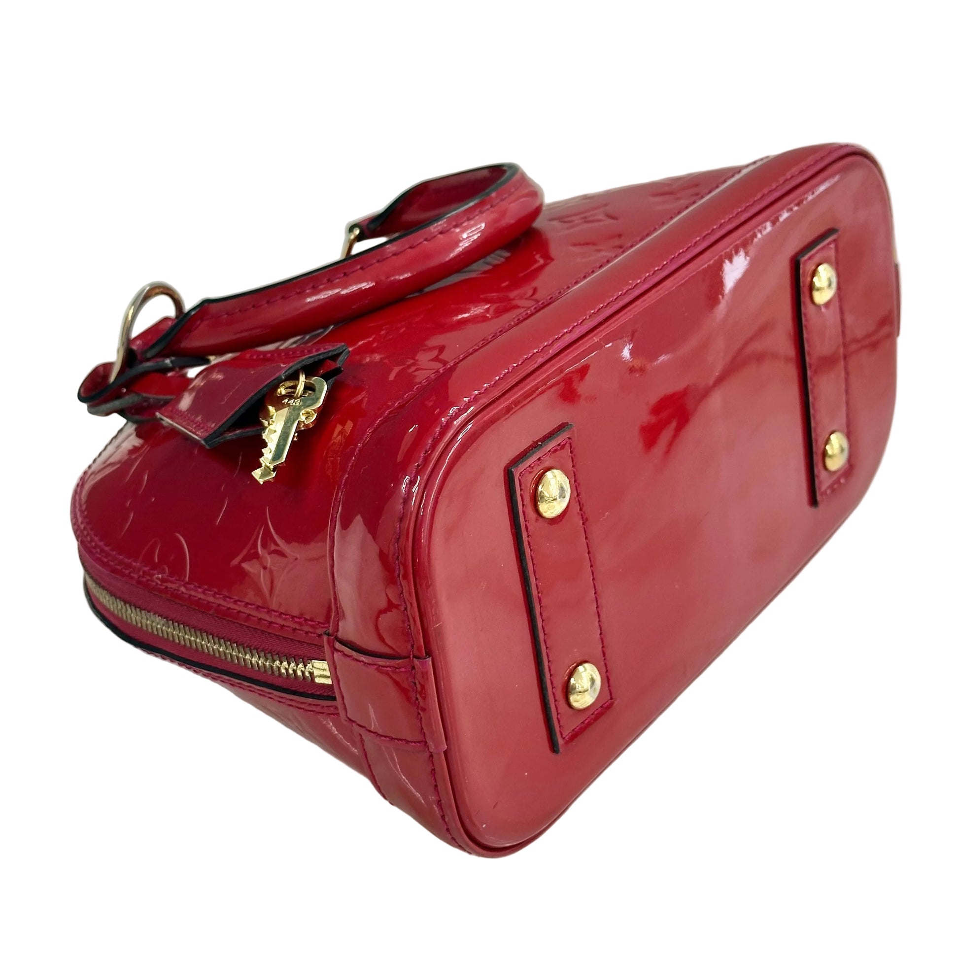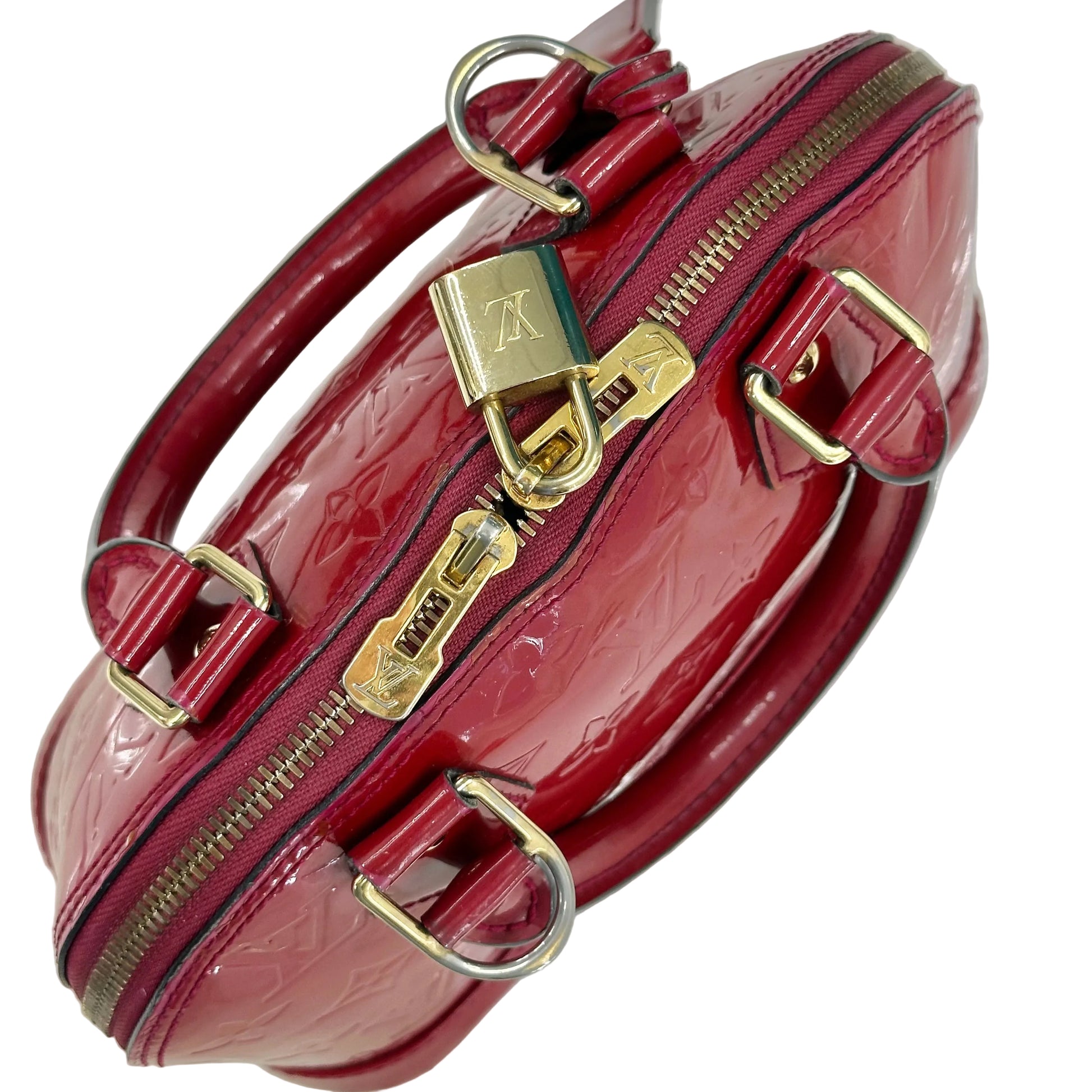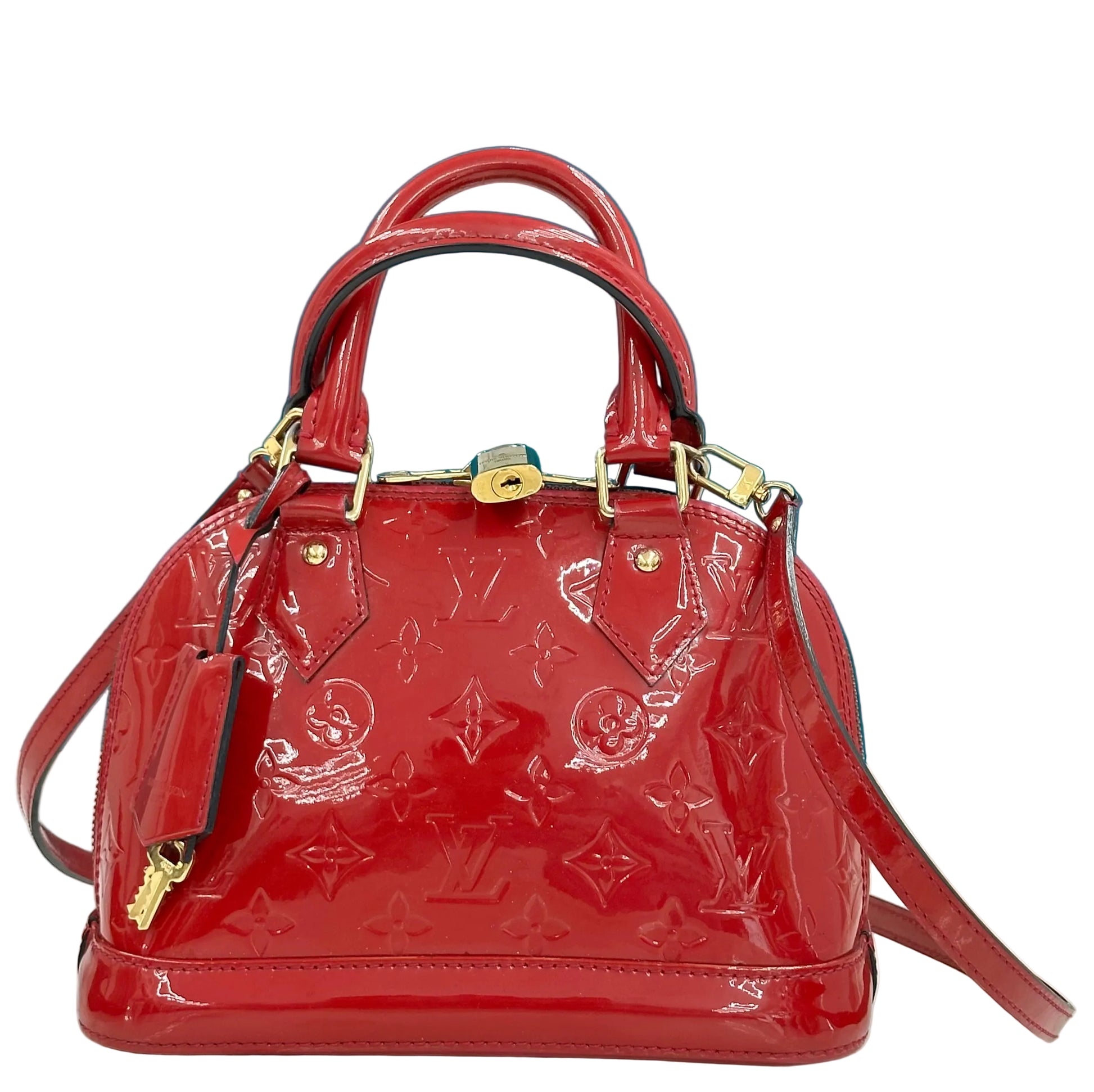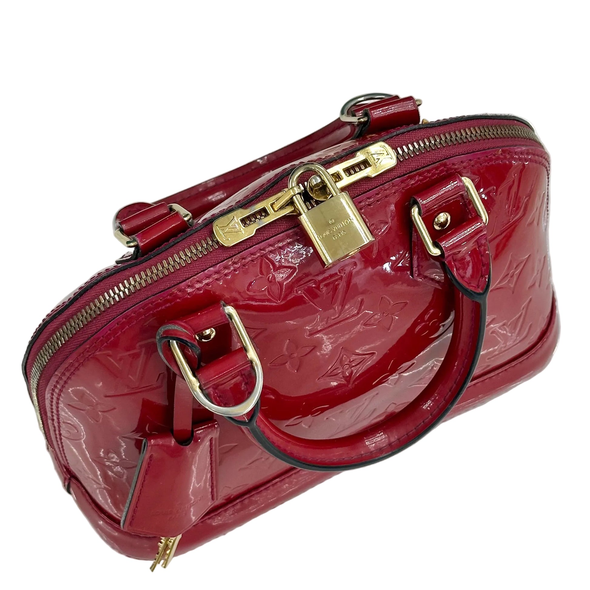 Louis Vuitton Alma BB in pelle Monogram Vernis di colore rosso.