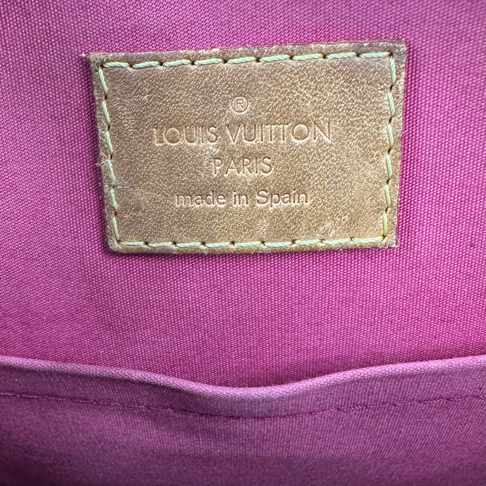 Materiale: Realizzata in pelle verniciata (Vernis) con l'iconico motivo monogramma di Louis Vuitton impresso sulla superficie.