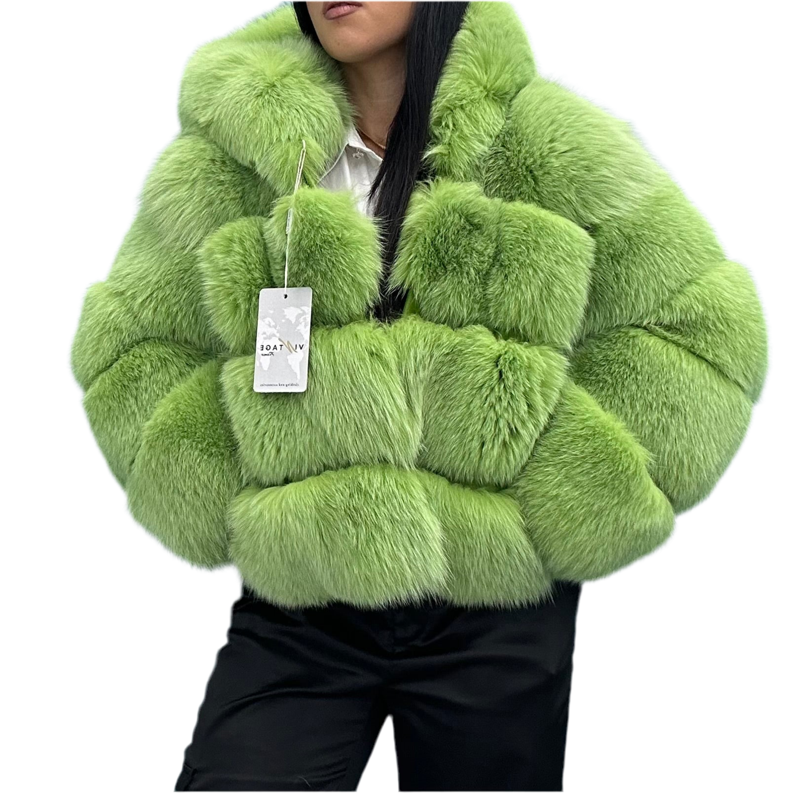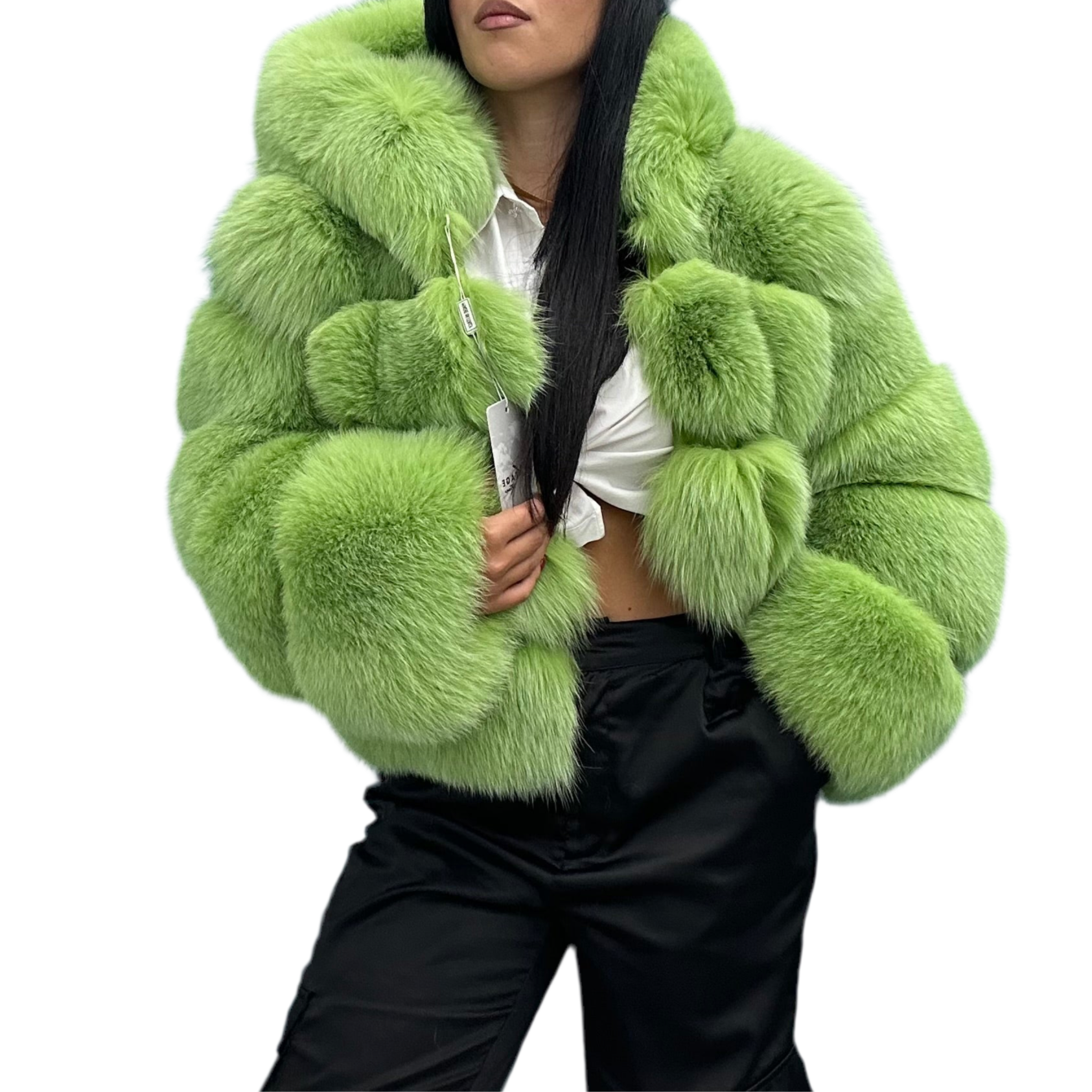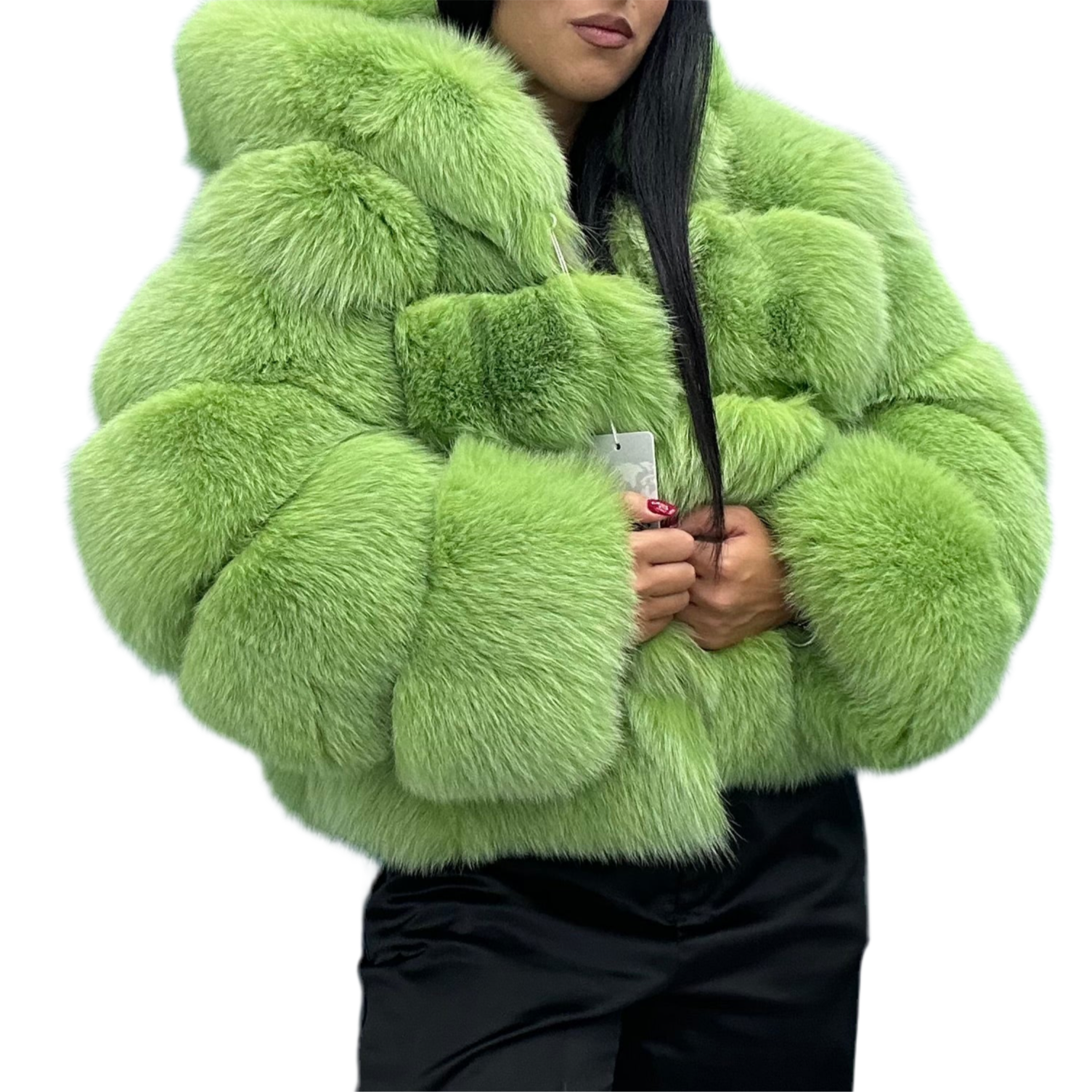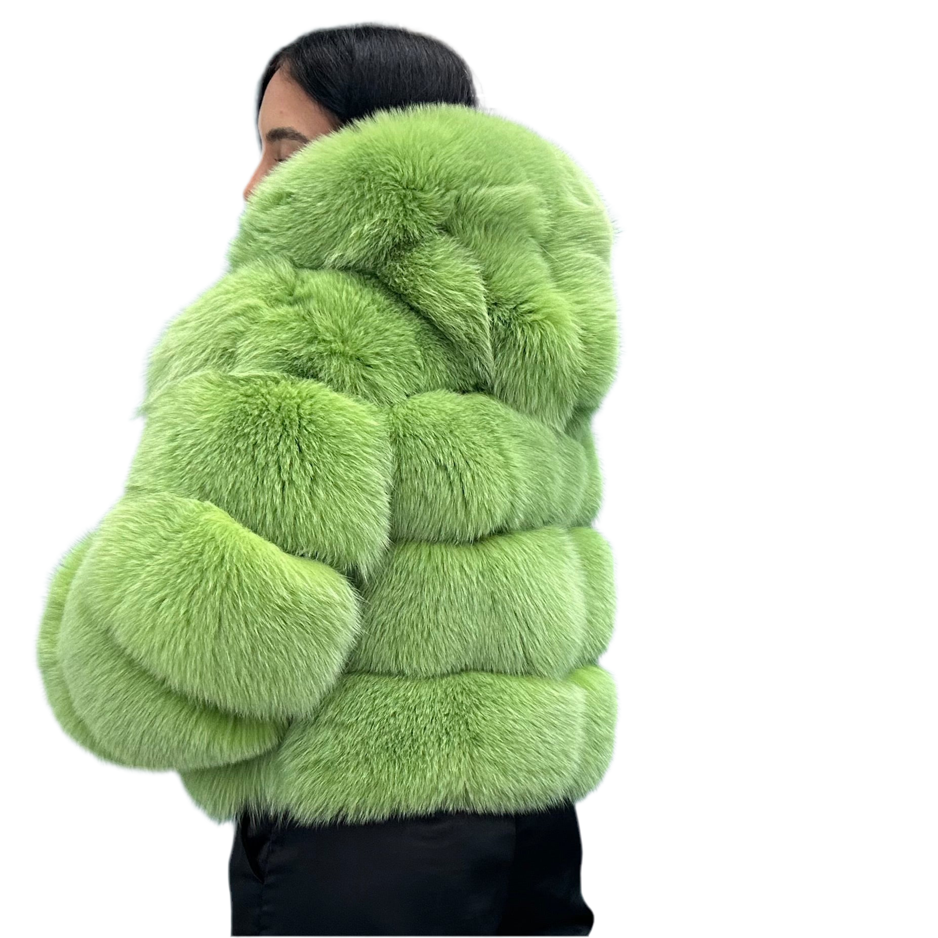 - Pelliccia in Volpe Verde Lime con cappuccio